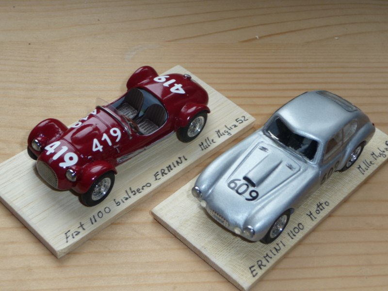 Nel panorama dei piccoli costruttori che animarono la scena italiana del dopoguerra, Pasquino Ermini occupa un posto particolare, non foss\’altro che per la raffinata tecnica che contraddistingueva le sue creazioni motoristiche, come i bellissimi propulsori a doppia accensione e il raro 1500 che purtroppo non poté essere adeguatamente sviluppato. Per Ermini lavorarono anche prestigiosi carrozzieri quali Frua, Scaglietti e Motto. Una storia tutta da raccontare, che sarà presto pubblicata in un libro di cui forniremo i dettagli a tempo debito. Intanto ecco le immagini delle uniche (penso) Ermini riprodotte in 1:43 da Lilliput. Speriamo che l\’uscita del volume possa incentivare qualche artigiano a fare qualcosa di inedito e interessante, come la barchetta 357 che ricorda in piccolo la Ferrari 750 Monza.