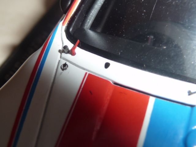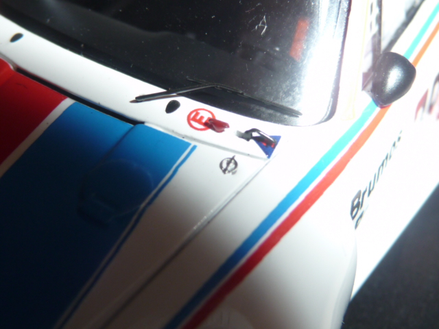| La retina IMSA è in fotoincisione e stavolta Spark non l\’ha dimenticata, com\’è invece accaduto sulla Porsche 935 vincitrice nel 1980. Notare le due luci di riconoscimento lato box. |