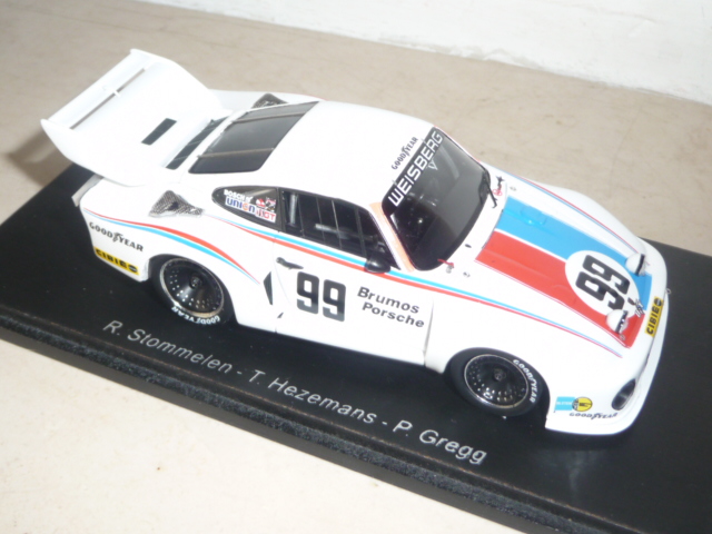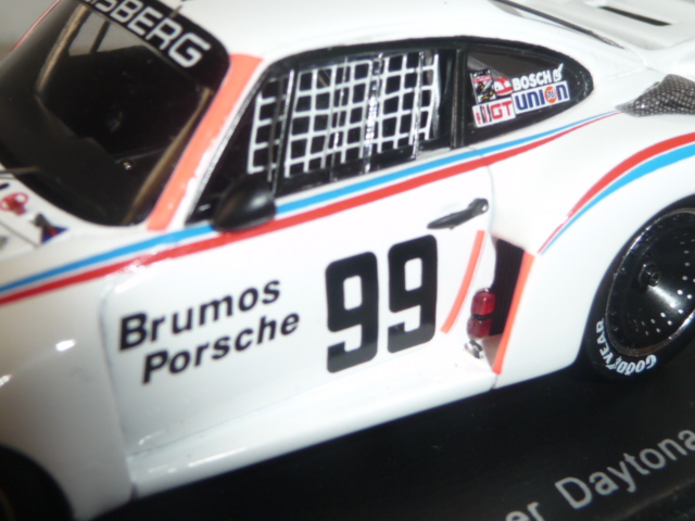 Nella serie dei vincitori di Daytona, Spark ha appena presentato la vettura del 1978 (numero di catalogo 43DA78), la Porsche 935/77A del team Brumos, pilotata da Stommelen / Gregg / Hezemans. La 935 di Spark è ormai un modello noto, essendo già stata declinata in moltissime versioni, soprattutto di Le Mans. Dalla documentazione disponibile non emergono errori evidenti; sono state riprodotte le bande rosse di riconoscimento sui montanti e sul lato sinistro a fianco delle entrate d\’aria dei parafanghi posteriori. Viene semmai il dubbio se il colore di quelle bande fosse il rosso fluorescente che ha scelto Spark o un semplice rosso.