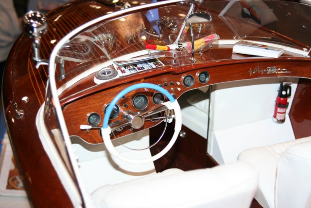 Sul cruscotto si notano tra le altre cose i razzi di segnalazione, il catalogo della Riva ed un giornale di modellismo che parla del modello stesso.