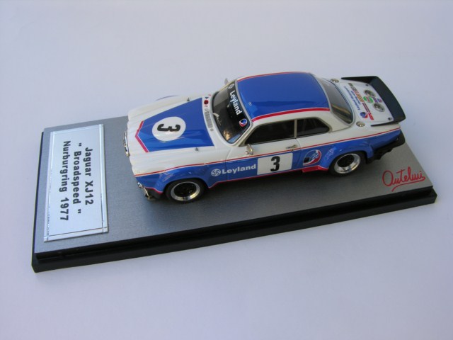 Con Pier Angelo Antelmi ho un debito di gratitudine per tutti i favori che mi ha fatto e purtroppo devo confessare che è con molto ritardo che pubblico queste foto che mi dette alla borsa di Novegro nel dicembre scorso. Ma spero di recuperare pubblicandole qui nel blog (a dicembre ancora il blog non esisteva), in modo che tutti si possano fare un\’idea. Il soggetto è intrigante: si tratta della Jaguar XJ12 Gruppo 2 preparata Broadspeed per l\’Euroturismo 1977. Il modello è ufficialmente l\’ultimo marchiato AMR, uscito a cura di Mike Craig che aveva promesso al suocero di portare a termine questo progetto. La Jaguar è quindi comparsa sotto il doppio marchio AMR e Piranha, ma mi piace pensare che sia più un AMR che un Piranha. Nel montaggio di questo modello si sono cimentati già Fred Suber e Jean-Paul Magnette. Sull\’esecuzione di Suber è bene stendere un velo pietoso, mentre molto più valido appare il montaggio di JPM. Alcune interessanti considerazioni potete leggerle sul forum Duegi, a questo link: http://www.forum-duegieditrice.com/viewtopic.php?f=10&t=57224&hilit=Jaguar+Piranha+amr