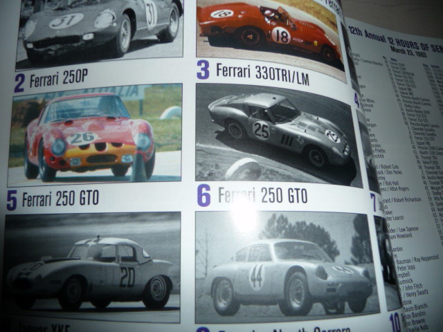 Chiude l\’opera un elenco alfabetico di tutti i partecipanti alla 12 Ore. Il progetto di questo libro era in realtà un po\’ più ambizioso ma poi alcuni problemi di budget ne hanno in parte limitato lo sviluppo. Ne è risultato quindi un riassunto peraltro valido ma inevitabilmente incompleto di ciò che è stata la gara in oltre mezzo secolo di storia. Molto interessanti le foto, che ritraggono vetture in versioni spesso semisconosciute o del tutto sconosciute, almeno per il pubblico europeo. Purtroppo le immagini sono un po\’ piccole, ma la quasi totalità è sufficientemente nitida per cogliere alcuni dettagli essenziali, e non si può non pensare ai modellisti.