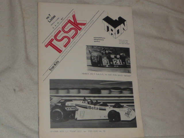 | Copertina del TSSK n.7 (autunno 1977) con in evidenza la Ferrari 312 P del \’74 e la Surtees TS19, due kit della gamma Tron. |