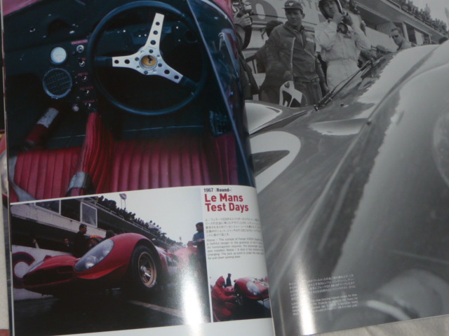 Il primo volume della serie Sportscar Spectacles by Hiro è dedicato alle Ferrari 330 P4 e 412 P che corsero nella stagione 1967. Questo primo fascicolo si occupa solo di tre eventi: le prove di Le Mans, la 1000 km di Monza e la 1000 km di Spa. Il layout di questa pubblicazione è lo stesso utilizzato per le ormai numerose uscite dei quaderni dedicati alle Formula 1 (ormai ce ne sono in catalogo ben 14, l\’ultimo dei quali sulla Lotus 98T del 1986). Dire che questo libretto è indispensabile per ogni appassionato di Ferrari e di Sport-Prototipi può sembrare banale ma è il minimo che si possa scrivere: gran parte delle foto pubblicate sono inedite o comunque nuovissime, molte a colori e molte dedicate ai dettagli della meccanica e degli interni. E\’ un lavoro alla giapponese nel senso migliore del termine, corredato dai profili dei piloti che corsero con queste vetture e da alcune foto delle principali rivali di quell\’anno, gara per gara: incidentalmente, quindi, escono fuori anche altre interessantissime immagini di Ferrari 250 LM o di altre Sport e GT. I testi, in giapponese e in inglese, sono sostanzialmente delle didascalie allungate che non aggiungono nulla a quanto si sappia sull\’argomento. Ma questo è un libro che si acquista per la documentazione che contiene, che è quanto di meglio si possa chiedere sulle P4 e sulla 412P. E\’ prevista l\’uscita di una seconda parte, che conterrà verosimilmente altre gare della stagione \’67. Da non perdere.