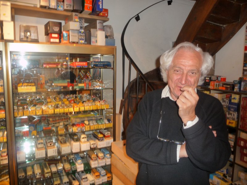 Comunque. Michel Nikolay della Galerie du Jouet Ancien può essere un personaggio discusso. Anzi, sono tutti personaggi discussi, ognuno parla male dell\’altro, il che equivale ad un sostanziale pareggio. I greci avrebbero detto che i negozianti di modelli parigini sono \”vasai\”. E non sarebbero andati lontani dalla verità. Il modello obsoleto è ancora vivo; magari non fa i 100 metri in 9\”50, ma è ancora vitale. Ormai la generazione che si alimentava di questo tipo di modelli per nostalgia verso un\’infanzia perduta ha progressivamente lasciato il posto (per ragioni anagrafiche) a delle categorie di collezionisti che con quei modelli non hanno giocato ma che ne subiscono ugualmente il fascino.