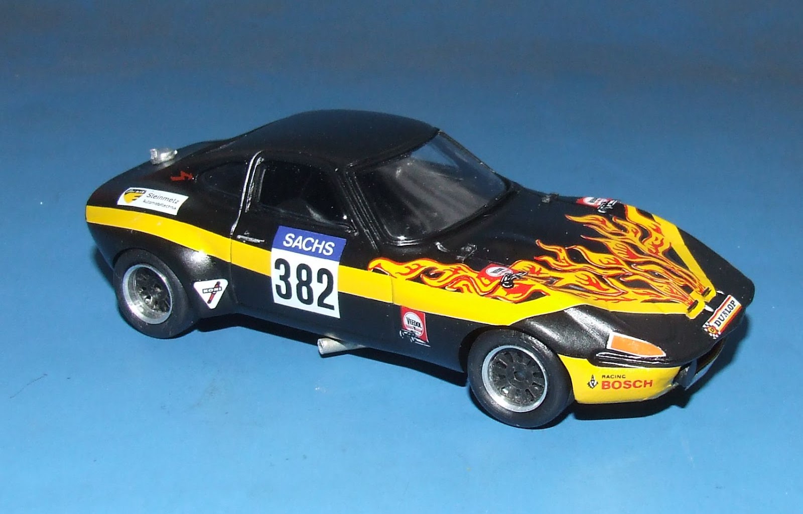 Everything started in 1976 as a secondary income while studiying. Then got in contact with the very first German specialist modelcar shop Spielwaren Danhausen (here in my hometown too), well known for their own Minichamps series (not yet made in China!), all these kits produced either by AMR France or Western Models GB (Plumbies too from GB). I did a very lot of buildings for that shop exclusively for quite some years, through all the spectre of \”cottage\” industry like John Day, Mikansue, FDS, AMR\’s own range, Record, then Starter and Prov.Moulage who revolutioned casting processes with the then new resin. One day -think it was in 1978- Danhausen managing brothers Peter and Paul-Günther Lang persuaded me to become a freelance modelbuilder, they told me I even could order a Ferrari directly as there was that much to do, so I quit studying boring engineering. Up to today….no Ferrari, only one or two downscaled ones! But I never regretted the change of business, still feel quite content to be master in my own house and of my own time. In the eighties business for Danhausen became more and more, building the cheaper non factory build AMR\’s in small series, even some officially licensed ones but without plaques (Swap Shop+Valvoline Moby Dick, yellow Spa65 GTO, XJR5 LM84), then \”ancestor\” of cheaper mass production AMR\’s labelled Century of which I even painted a hundred or more bodies per day. Other mass production models as the very first Porsche 956es in 1983 as \”give aways\” for NewMan, Kenwood, Skoal (who remembers??) or Audi sport quattro, up to 500pcs. Luckily I got aquainted to some private collectors already before and additionally I did a very few own designed ready builts series under my quite unknown label \”Speedy Special\” (Race Vettes 1971/72 and Group44 Triumph TR6), so my business survived on a low level with only two instead formerly up to eight assistant helpers.