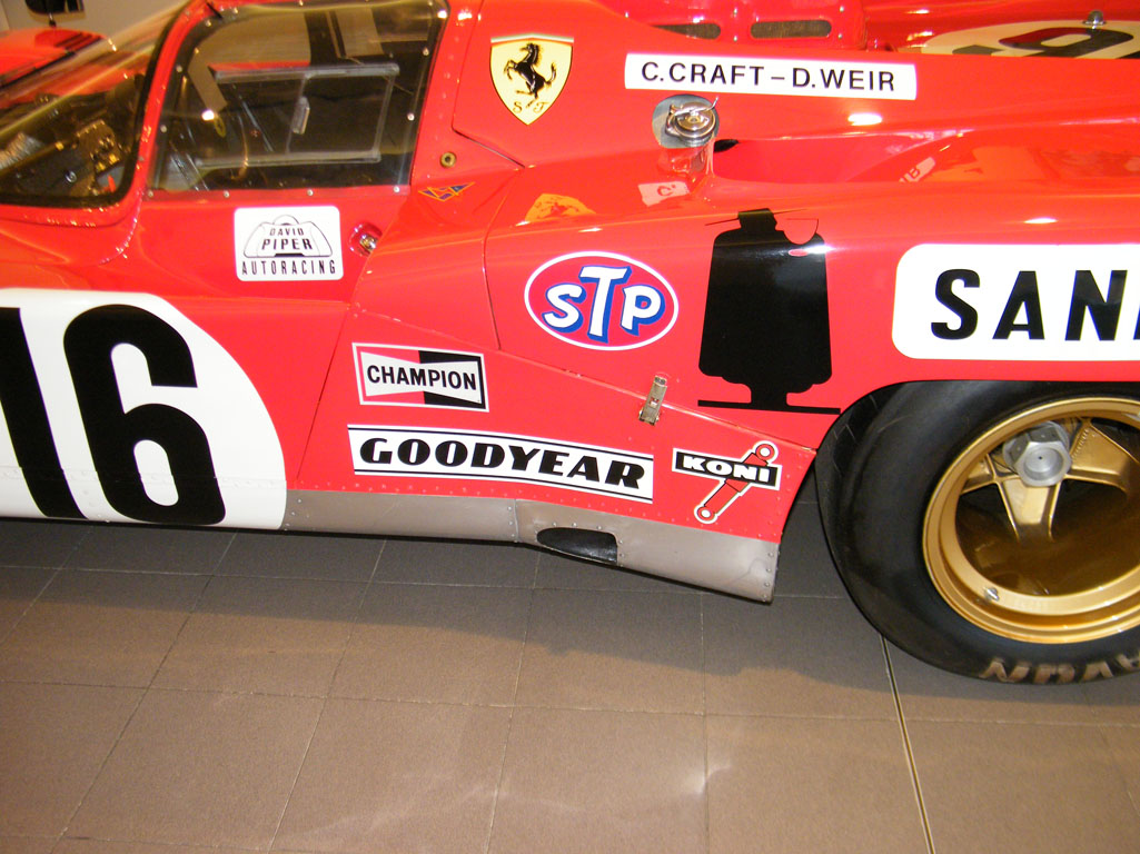 Da Claudio Govoni ricevo queste foto con alcuni commenti: si tratta di una serie di foto della ferrari 512 M telaio 1028, in livrea Piper/Sandeman che dovrebbe essere analoga a quella sfoggiata dalla vettura alla 24 ore di Le Mans. La vettura è stata esposta per oltre un anno alla galleria ferrari, a seguito di un approfondito restauro a cui il proprietario l\’ha fatta sottoporre a Maranello. Ovviamente si presenta nelle condizioni modificate attuali e non più in quelle originali. In particolare è stato aggiunto un secondo posto completo di cinture a fianco di quello del guidatore, sono stati montati scarichi silenziati e sono stati installati specchietti supplementari sui parafanghi anteriori, probabilmente per esigenze regolamentari delle gare per auto storiche.