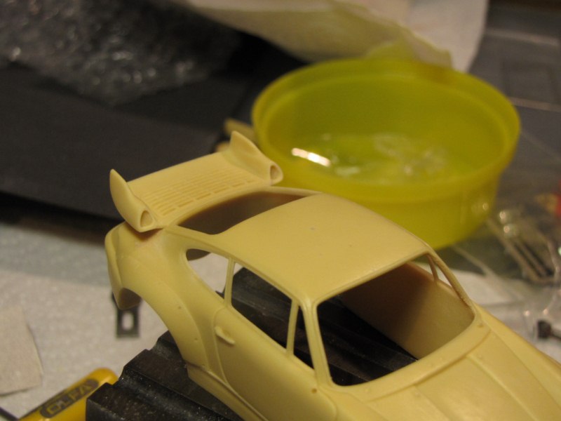 | …che ora sono netti e precisi. La preparazione della scocca avviene con della carta vetrata 600 per non rigare la resina. |