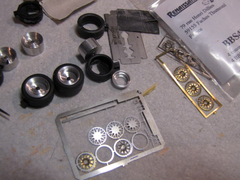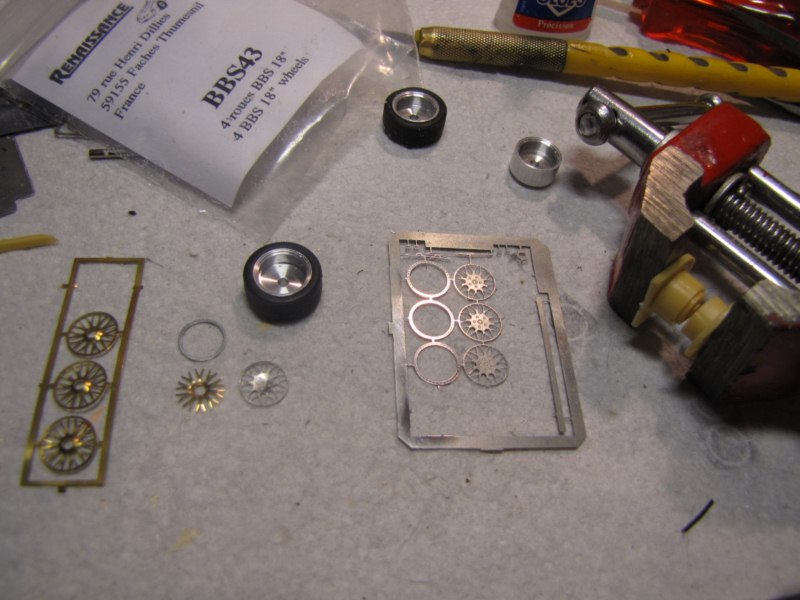 les roues sont une difficulté ; les inserts provence sont impossibles à galber et je n\’aime pas ! j\’ai utilisé des photodecs renaissance dont j\’ai enlevé le tour car ils sont de bonne couleur et dejà galbé. le resultat est etonnant et quand tout sera fait avec les disques les roues seront super belles !