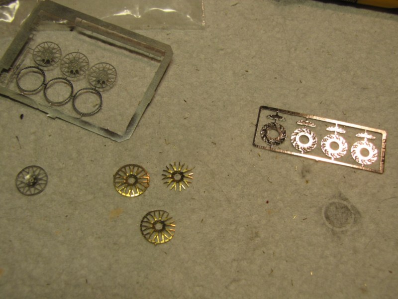 les roues sont une difficulté ; les inserts provence sont impossibles à galber et je n\’aime pas ! j\’ai utilisé des photodecs renaissance dont j\’ai enlevé le tour car ils sont de bonne couleur et dejà galbé. le resultat est etonnant et quand tout sera fait avec les disques les roues seront super belles !