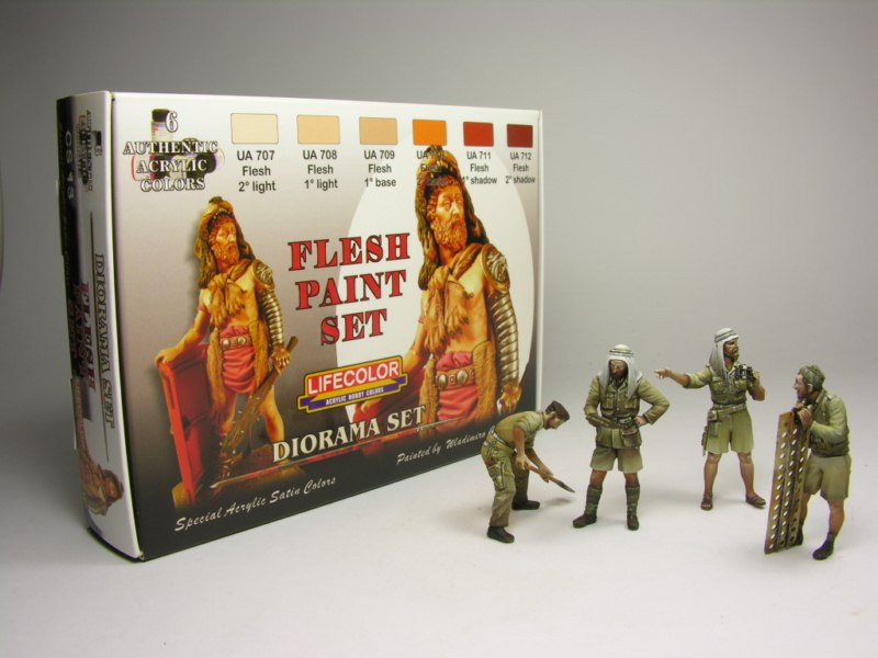 Per dipingere i figurini in plastica ho usato il principio della luce zenitale, ho dato una base ad aerografo sfumando i pantaloncini e le giacche, intervenendo successivamente con un pennello triplo zero per sottolineare alcune pieghe dei panneggi, gli incarnati sono dipinti con i toni del set Lifecolor dedicato a questo scopo, facile e veloce per ottenere sfumature e contrasti accattivanti sui volti dei soldati.\”