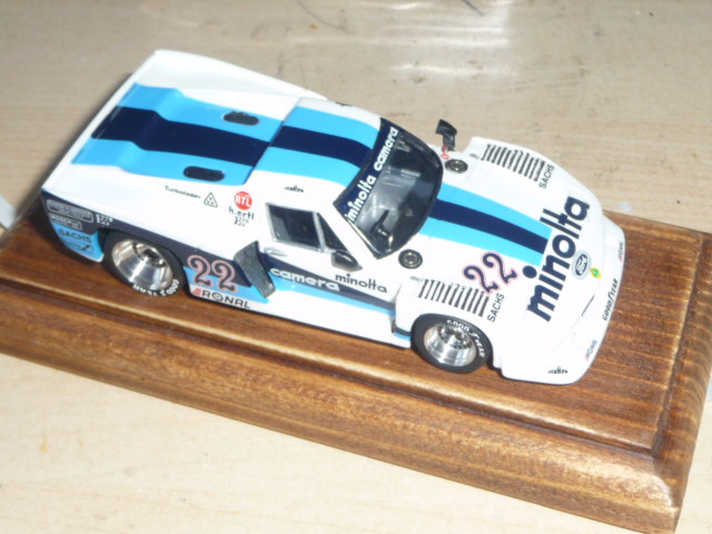 Juergen Renardy, di cui il blog si è già occupato in un\’ampia intervista, prosegue la propria attività con realizzazioni di versioni inedite o elaborazioni di kit esistenti. Spesso con un po\’ di inventiva si possono ottenere risultati interessanti, come nel caso di questa Porsche 908/4 Turbo, in versione DRM 1982 (Zolder n°5 e Most n°2); si è partiti dalla base Tokoloshe (versione Liqui Moly) con decals stampate specificamente e verniciatura tricolore, modifica delle prese NACA posteriori e altri leggeri ritocchi per ottenere la versione 1982 della 908/4 Turbo: