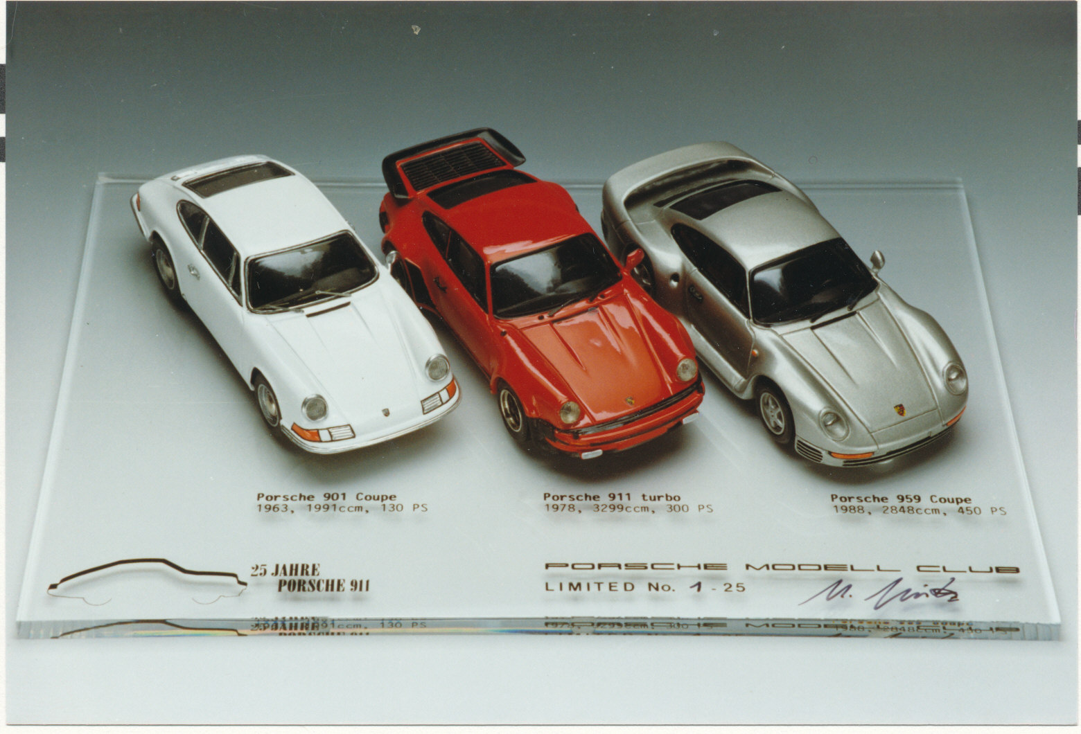 Negli anni ottanta e novanta il Porsche Modell Club (PMC) rappresentò per gli appassionati delle vetture di Stoccarda un punto di riferimento e un\’occasione pressoché unica per mettersi in contatto con colleghi collezionisti di tutta Europa e anche del resto del mondo. Nell\’era prima di Internet uno dei grandi vantaggi dell\’associazione al PMC era la frequenza delle comunicazioni, con un gran numero di newsletter, novità e altre iniziative. Il PMC fu fondato nel 1978 da Ulrich Upietz (oggi fotografo ufficiale della Porsche), A. Fey e E. Wollny e ottenne subito il riconoscimento ufficiale di Porsche AG. Già dal 1979 il club si mosse in varie direzioni per far conoscere la propria attività, all\’inizio ovviamente limitata ma poi sempre più articolata.: fin da subito venne stampato un notiziario e furono stipulata alcune convenzioni con negozi specializzati, per sconti e altre facilitazioni ai soci, che nel 1980 erano già 86. Nel 1981 Fey e Wollny, pur restando associati, lasciarono tutte le incombenze a Upietz, che divenne così l\’unico responsabile del PMC dopo un sostanziale riassetto organizzativo. La sede del PMC era a Duisburg, nella Ruhr.