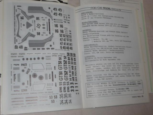 Era un fiorire di versioni inedite, con modelli esclusivi e montati molto bene da Renardy. Nelle edizioni di \”Porsche Modell\” ogni uscita era descritta dettagliatamente e veniva fornito un formulario di ordinazione spesso completo di un\’immagine su carta fotografica del modello. Un altro piatto forte del PMC era poi l\’offerta di foto: grazie all\’attività di Upietz e della sua Group C Production, il PMC era in grado di fornire una documentazione completa di praticamente tutte le principali gare endurance della stagione (WSC, IMSA, Le Mans, ma anche Super Cup), e questo nel periodo in cui Internet ce l\’aveva solo l\’esercito americano era qualcosa di incredibilmente utile e innovativo. Insieme alla documentazione di vetture reali venivano prodotti dei quaderni tematici in cui si raccoglievano alcune decine di immagini di modelli Porsche: particolarmente interessanti le edizioni che raffiguravano le elaborazioni, provenienti per lo più dalla collezione di Paul Roche.