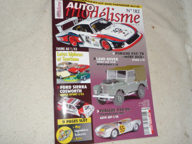 Modello stradale 1:43 del mese è la Voisin C24 Aerodyne 1934 di Chromes, che ci ha abituato a miniature di grande qualità e pulizia, nel settore delle carrozzerie speciali anni trenta e dintorni. Fra le competizione, ancora gli artigiani ad aggiudicarsi la palma di modello del mese: Vroom con la Matra MS650 Coupé sperimentale e Accro Mini 43 con una Porsche 911 GT3 Cup in configurazione rally e sponsor Yacco; il prototipo è dovuto a Patrick Cornu. Un modello simpatico ma ci si può chiedere i perché di una scelta non proprio originale, anche se la qualità sembra esserci. Niente da dire sulla MS650: i modelli di Ottenwaelder sono quasi sempre molto convincenti. Benoit Sayze firma invece un articolo sui diorami NASCAR in 1:43, un argomento originale, sostenuto da creazioni che non mancano di colore e di creatività. Viene in mente quel celebre libro di Smokey Yunick, Best damn garage in town. Leggetelo, vi divertirete. Per restare in tema, segue la prova di montaggio di un transkit di Oval43 (cui fa capo François Bensignor) con cui si può ottenere l\’AMC Matador nella NASCAR 1974, integrando i pezzi forniti con una plancia di decals Pattosplace. Sarò distratto, ma nell\’articolo non si cita la marca della base di partenza (credo sia un modello da edicola della James Bond Collection). Curiosamente non si fa neanche mai menzione della scala, anche se il nome della marca lascia ben pochi dubbi in merito. Il resto è diviso fra grandi scale (con la Porsche 935/78 in 1:18 di Spark in bella evidenza) e slot.