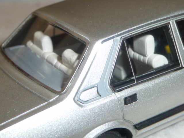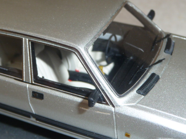 Veniamo adesso più nello specifico di questo modello col quale Kess si è posta all\’attenzione dell\’esigente pubblico dell\’1:43. E quando si parla di modelli italiani più o meno \”storici\” le antenne qui da noi sono ben puntate. A case come Looksmart, BBR, MR non si è perdonato niente, e a ragione direi, perché un modello, anche stradale, che si attende da tempo diventa pressoché inutile se l\’occasione viene sprecata con banali errori. Premetto che non mi intendo di varianti anno per anno su vetture di questo tipo. Le apprezzo e una bella fetta della mia collezione è composta da Alfa Romeo, Fiat e anche Lancia degli anni settanta/ottanta, ma non saprei dire, salvo in rari casi, se quel listello sul cruscotto apparteneva alla produzione del 1983 o del 1984, o se il modello del 1985 aveva la lancetta del contagiri bianca oppure rossa. Salutando col dovuto rispetto chi è in grado di apprezzare certe differenze e di conseguenza condurre una critica del tutto storicamente documentata, proseguiamo lo stesso questa disamina del modello, lasciando magari spazio a chi sappia confrontare certi particolari. Ho misurato il modello e posso dire che sostanzialmente i riscontri sono giusti: l\’Alfa 6 di Kess si avvicina con tolleranze nell\’ordine di 1 millimetro o di frazioni di millimetri alla scala teorica 1:43. Dove invece le dimensioni non tornano gran ché è nella larghezza: la vettura vera misurava 1684 mm, che tradotti in scala 1:43 danno 39,16, contro i 37,00 scarsi del modello (senza specchietti) e 42 (con gli specchietti). Se le misurazioni sono corrette – le verificherò ancora – c\’è una mancanza di un paio di mm nella largezza, cosa che in scala 1:43 si nota abbastanza. Forse deriva da questo l\’impressione di una coda troppo lunga che alcuni avevano avuto commentando un thread di Umberto Cattani nel forum Duegi? Non saprei e preferisco sospendere il giudizio. I volumi sono difficili da giudicare, anche quando si tratta di vetture tutto sommato \”facili\” come l\’Alfa 6, che è il trionfo delle linee geometriche. Ecco una serie di foto più particolareggiate, con via via i commenti su alcuni aspetti del modello.