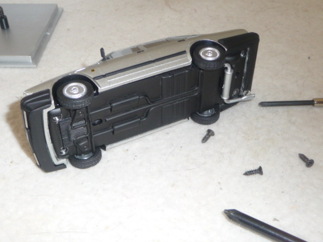 | …ma non provate a smontarlo perché delle quattro viti che tengono ancorato il fondino alla carrozzeria, quella sotto l\’impianto di scarico è praticamente impossibile da svitare, essendo stata completamente consumata. Un modo per impedire ai bambini curiosi di vedere com\’è fatto il giocattolo dall\’interno? E\’ solo questione di tempo… |