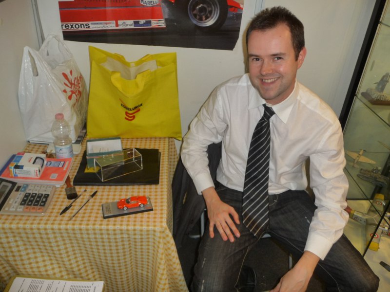 | Simon Antelmi il sabato mattina, prima di alcune dimostrazioni didattiche dal vivo, su come si crea la patina di invecchiamento su alcuni mezzi militari. |