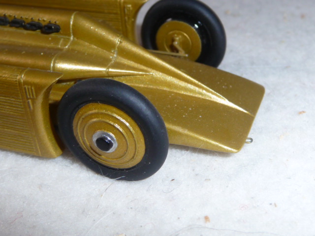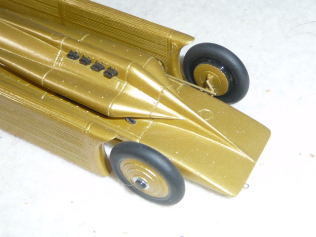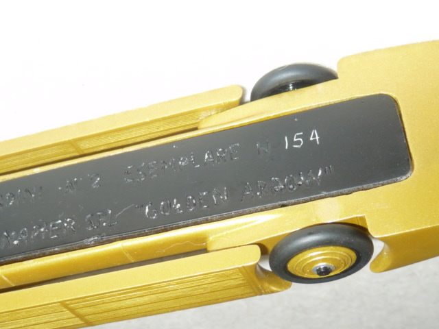 Visto l\’interesse che ha incontrato il post sul Sunbeam 1000HP, ho deciso di fare una serie di piccole retrospettive sui primi modelli di Ugo Fadini, almeno fino ai modelli numero 6-7, arrivando quindi al 1982/3. Dopo il Sunbeam, Fadini mise in cantiere un altro mezzo utilizzato da Segrave, il Golden Arrow Irving Napier del 1929, che a Daytona stabilì il record di velocità su terra a oltre 334 km/h. Questo è probabilmente uno dei modelli più rari della produzione Fadini: uscito nel 1976, il Golden Arrow si arrestò dopo 160 esemplari, anche per la complessità del montaggio e della finitura di certi dettagli, come la scritta alle spalle del pilota, fatta a mano. Le gomme sono in resina e ancora oggi, dopo 36 anni, il Golden Arrow di Fadini non impallidisce al confronto con modelli ben più recenti. Si trattava di un primo passo in avanti rispetto al pur sempre ottimo Sunbeam 1000HP, anche considerando l\’epoca ancora pionieristica. Nel 1976 non erano in molti a poter produrre modelli con questo livello di finitura, anzi si può dire che i Fadini rappresentavano lo stato dell\’arte nell\’1:43 artigianale.
