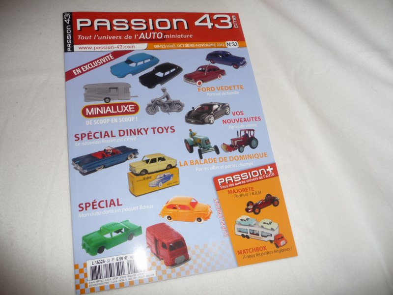 Numero particolarmente ricco e interessante, quello di ottobre per questa rivista che si ispira per stile e contenuti ai vecchi Argus de la Miniature, non dimenticando però l\’attualità. Il bello di Passion43ème è proprio la vivacità e la freschezza che mancano completamente in altre riviste. Il direttore, Didier Beaujardin, universitario di Bordeaux e persona di cultura, ha saputo dare a questo mensile un\’impronta molto personale e originale, privilegiando spesso l\’aspetto umano del collezionismo, con visite frequenti agli appassionati e reportage su borse di scambio, mostre e manifestazioni varie. Questo numero di ottobre propone diversi argomenti sui quale varrebbe la pena soffermarsi con maggiori dettagli in futuro: si continuano le anteprime sulla futura produzione Minialuxe, ormai prossima al debutto, tanto per fare un esempio. Interessante intervista a Bernard Hue, che ha recentemente creato la gamma Perfex, specializzata in veicoli pubblicitari. Ricordiamo che Hue è anche l\’amministratore delegato di Momaco, che distribuisce in Francia numerosi marchi). Lo \”zoom\” è stavolta dedicato alle Ford Vedette in scala 1:43, mentre quasi al centro della rivista si trova uno stimolante dossier-recensione sull\’ultima edizione di Dinky Toys et Dinky Supertoys Français, recentemente rivisto e corretto dallo storico autore Jean-Michel Roulet. Questo e molto altro si trova nel numero 32 di Passion43ème, che a mio parere è una delle letture più piacevoli in materia di riviste automodellistiche. Priva delle ingessature tipiche di altri mensili, Passion43ème è qualcosa di abbastanza alternativo, da guardare con molta curiosità.