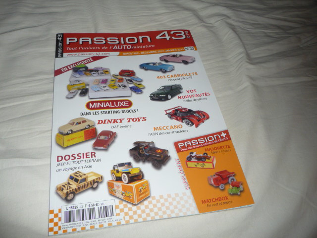 Passion43ème è una delle pochissime pubblicazioni che riportano con dovizia di particolari le attività delle associazioni e le cronache delle borse di scambio francesi ma non solo. Fra gli articoli più interessanti, uno speciale sulle Peugeot 403 Cabriolet, una rassegna sulla Giulia berlina e un\’analisi della DAF berlina della Dinky Toys. Ricordiamo che Passion43ème verte principalmente sul mondo dell\’obsoleto e del diecast, ma non mancano interessanti escursioni fra gli speciali.
