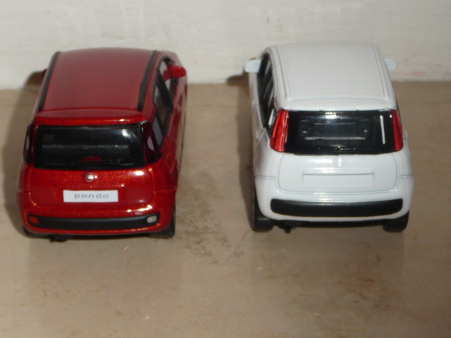 1. Ciao David! Sinceramente non riesco ad apprezzare queste due Panda (a parte il fatto che proprio il modello vero non mi piace ma questo è un altro discorso). Come scrivi te una ha il terzo vetro laterale stampato mentre l'altra ha i fari posteriori mal realizzati. Ok sono modelli da 4 euro circa ma cosa gli costerà fare meglio un piccolo particolare?Ho la Abarth 695 Tributo Ferrari di Motorama (stessa fasci di prezzo) ed il solo particolare che non mi piace è l'effettiva mancanza dello specchio sul retrovisore (ovviato con una passata di vernice grigia; a volte basta poco per…