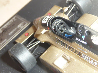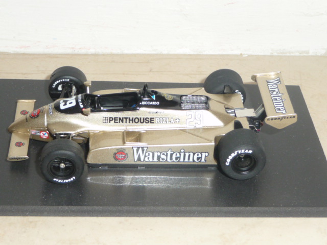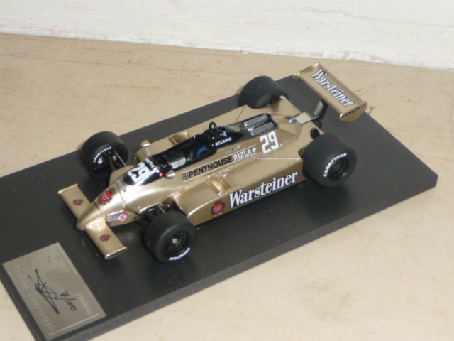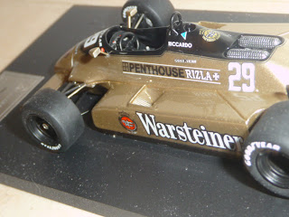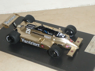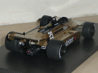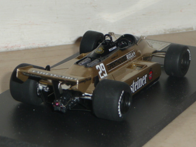 Come vedrete dalle foto, il factory built è decisamente un bel modello, che testimonia cosa si possa ricavare con un buon montaggio. Purtroppo il modello è penalizzato da alcuni difetti, per la verità tutti rimediabili ma sinceramente fastidiosi su un prodotto non certo economico come questo (sono necessarie circa 170 sterline, mentre il kit costa sulle 62-63 sterline). Nei programmi di John Simons vi è anche la A3 del 1981, quella arancione, sponsorizzata dalle Ceramiche Ragno e gommata Michelin, pilotata da Patrese e Siegfried Stohr.