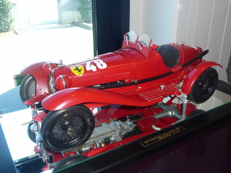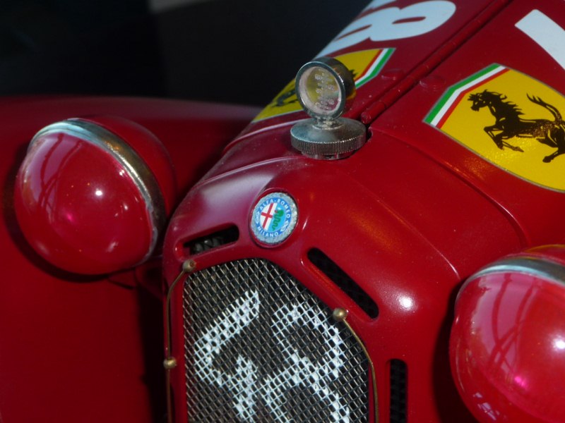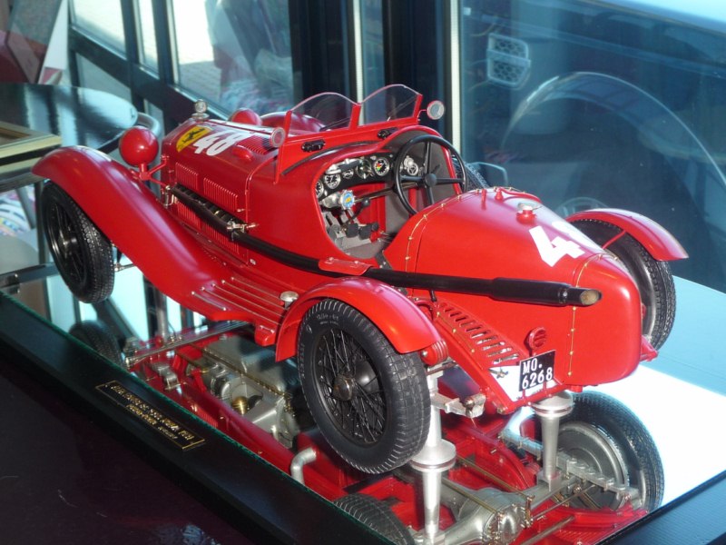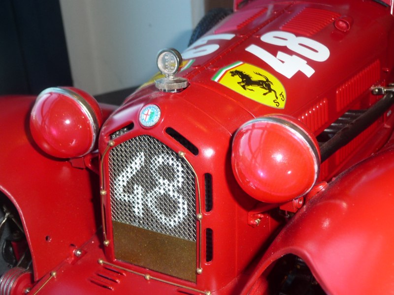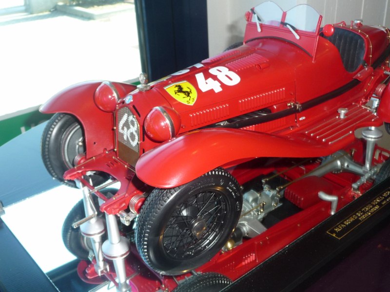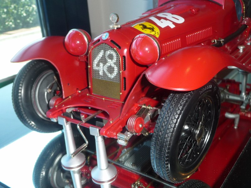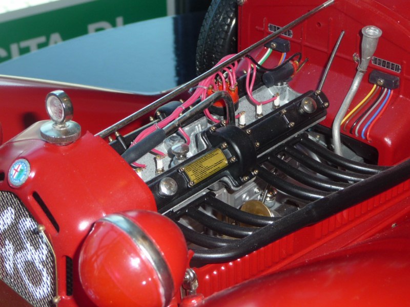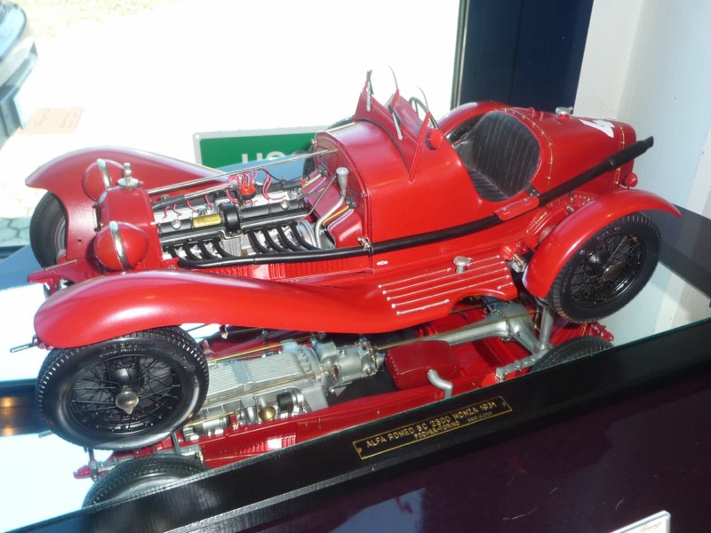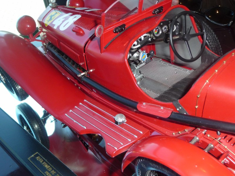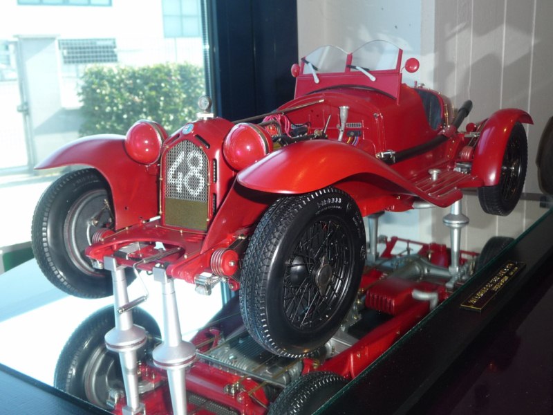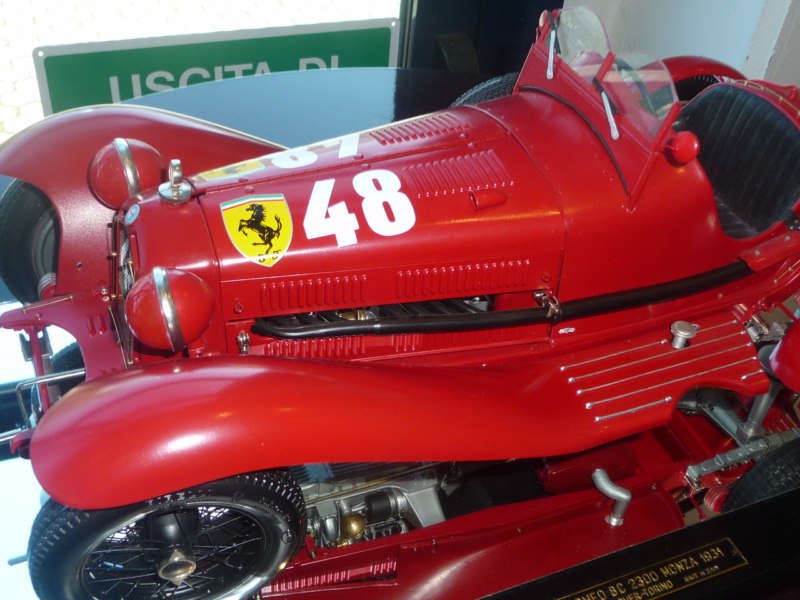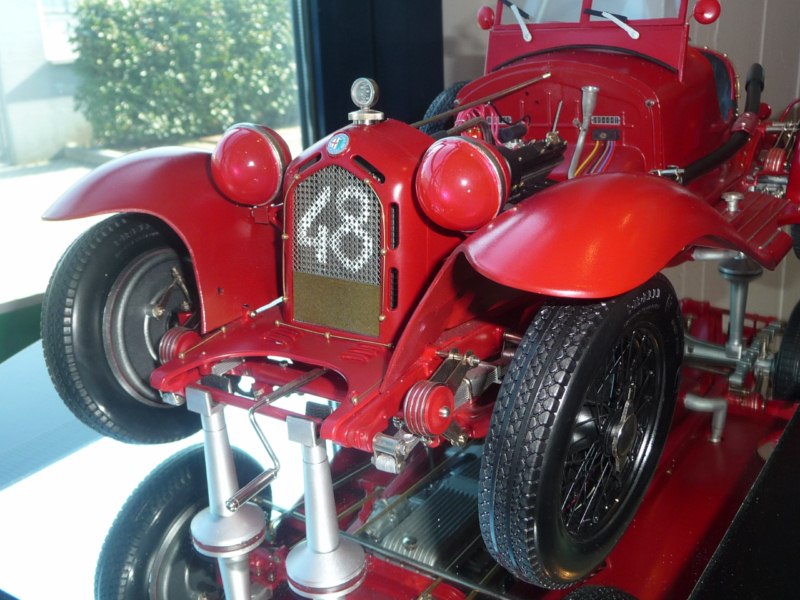 Per il momento fanno bella mostra di sé nell\’atrio di una conceria di Castelfranco di Sotto (Pisa), presso Paolo Bendinelli, grande collezionista di modelli diecast italiani in 1:24 e proprietario di quella che è probabilmente la raccolta più completa esistente in questa scala. Ma di tanto in tanto da Paolo si trova anche altro, come questi due modelli Pocher in scala 1:8, ricavati da vecchi kit e rielaborati, migliorati e ampiamente modificati da un modellista toscano. Per la tipo corsa si è cambiata addirittura la versione, passando dalla 8C 2300 a una più rara e originale 8C 2600, nei colori della Scuderia Ferrari. Per questo modello sono stati realizzati ex-novo i parafanghi, rivista tutta la meccanica, cambiati numerosissimi particolari. La verniciatura è stata realizzata in carrozzeria, come del resto è accaduto per la 8C 2300 stradale. Il lavoro sulla 8C 2600 è stato ancora più certosino, fino a spingersi alla completa ricostruzione del cruscotto o alla targa Modena autocostruita con i numeri in rilievo (meno realistica la targa sull\’altro modello) ma in generale entrambi gli esemplari si presentano ora molto mutati rispetto alla configurazione originale, che risale alla fine degli anni sessanta. Ecco una galleria d\’immagini scattate proprio stamani, in occasione di una visita a Paolo.