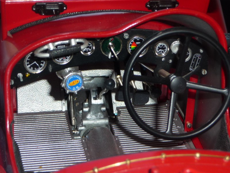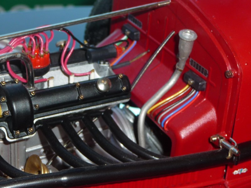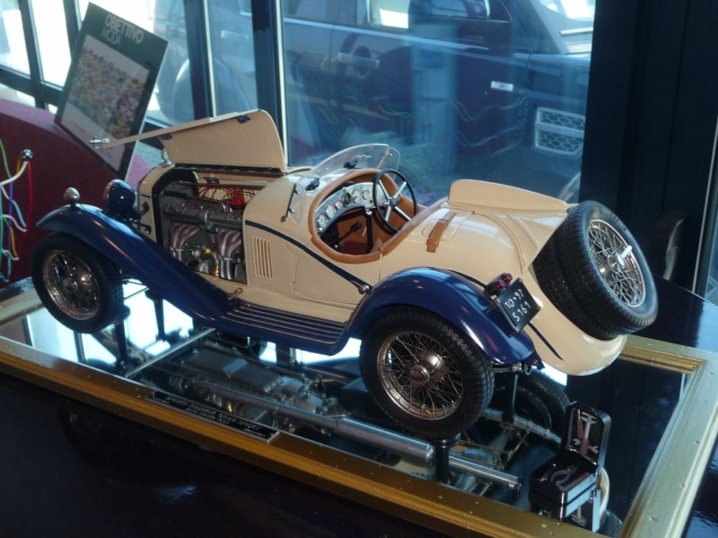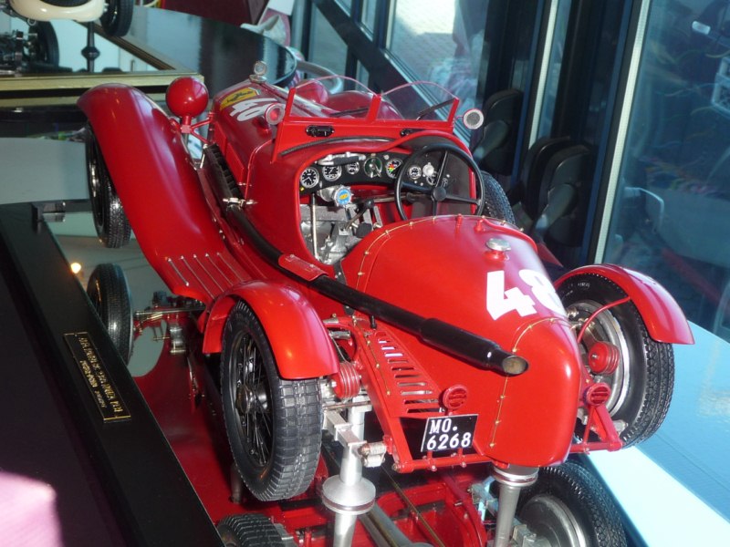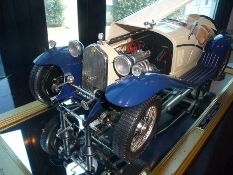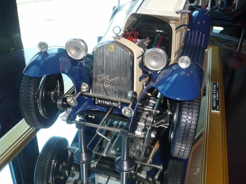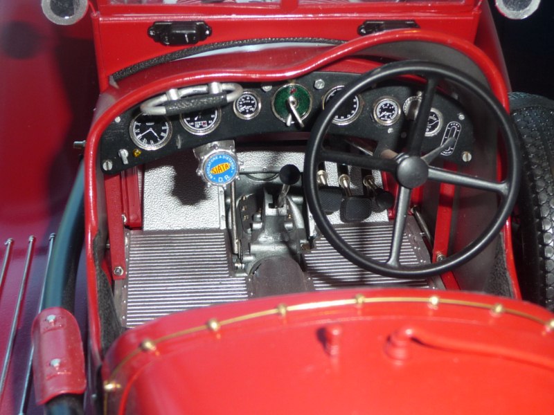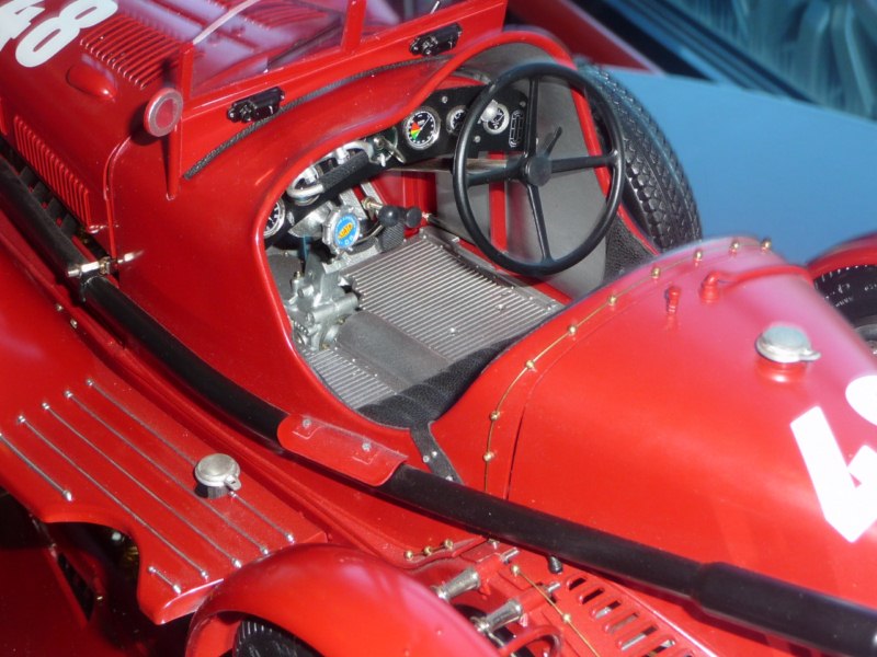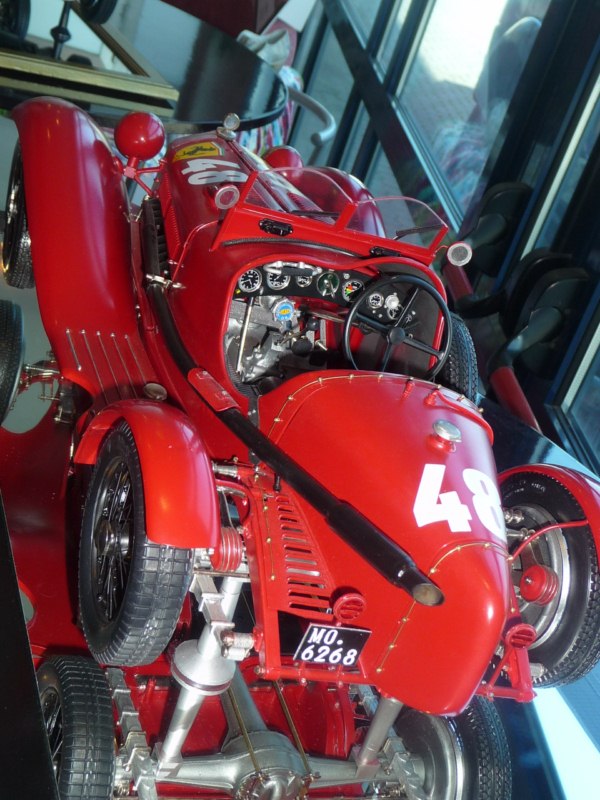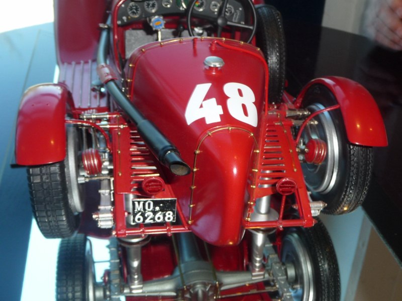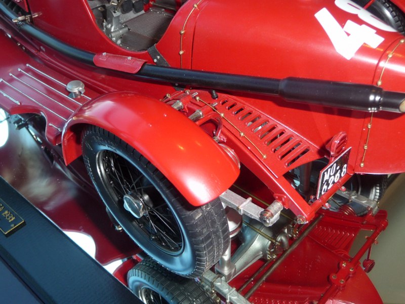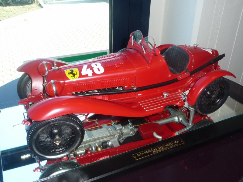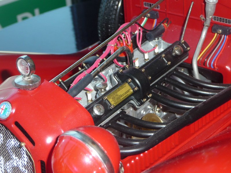 Per il momento fanno bella mostra di sé nell\’atrio di una conceria di Castelfranco di Sotto (Pisa), presso Paolo Bendinelli, grande collezionista di modelli diecast italiani in 1:24 e proprietario di quella che è probabilmente la raccolta più completa esistente in questa scala. Ma di tanto in tanto da Paolo si trova anche altro, come questi due modelli Pocher in scala 1:8, ricavati da vecchi kit e rielaborati, migliorati e ampiamente modificati da un modellista toscano. Per la tipo corsa si è cambiata addirittura la versione, passando dalla 8C 2300 a una più rara e originale 8C 2600, nei colori della Scuderia Ferrari. Per questo modello sono stati realizzati ex-novo i parafanghi, rivista tutta la meccanica, cambiati numerosissimi particolari. La verniciatura è stata realizzata in carrozzeria, come del resto è accaduto per la 8C 2300 stradale. Il lavoro sulla 8C 2600 è stato ancora più certosino, fino a spingersi alla completa ricostruzione del cruscotto o alla targa Modena autocostruita con i numeri in rilievo (meno realistica la targa sull\’altro modello) ma in generale entrambi gli esemplari si presentano ora molto mutati rispetto alla configurazione originale, che risale alla fine degli anni sessanta. Ecco una galleria d\’immagini scattate proprio stamani, in occasione di una visita a Paolo.