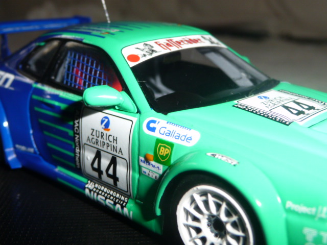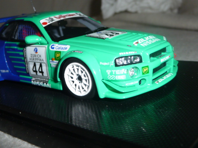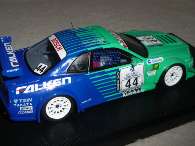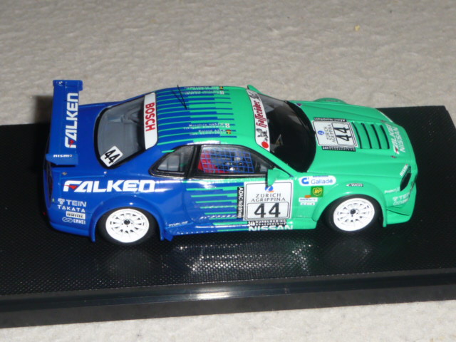 | Sempre accattivante la livrea Falken, che si tratti di Nissan o di Porsche. Il modello Ebbro, catalogo 44480, è realizzato in resina e si contraddistingue per una grande pulizia di montaggio e di una notevole accuratezza generale. |