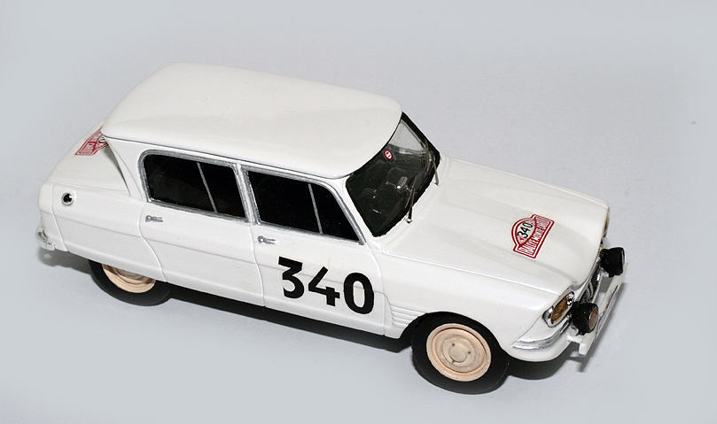 Meta, la collezione \”Auto indimenticabili\”, nella vetrina dell\’edicola faceva capolino una bella Citroen AMI 6 e la lampadina si è accesa. Perché non trasformarla con il minimo sforzo nella vettura di Matheron e Chabasse, illustre sconosciuta in gara al Rally di Montecarlo 1963? Si sa che partì ma sulla sua sorte, calano le nebbie più fitte. Una foto la ritrae incolonnata a fianco di alcuni camion mentre precede un paio di DS 19, immersa nella neve.