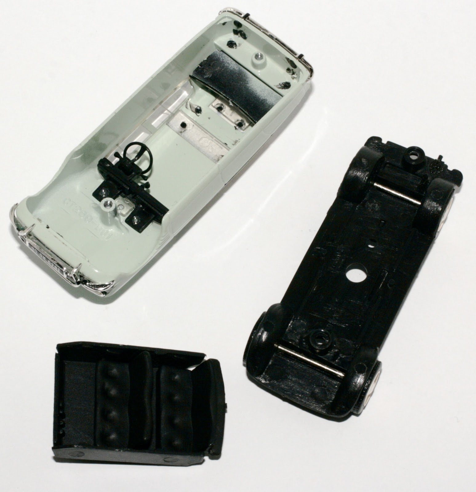 | Il lunotto è separato dai cristalli principali. Cofano posteriore e tettuccio sono in plastica, non immergeteli nel solvente per togliere la vernice, finireste per pentirvene amaramente! |