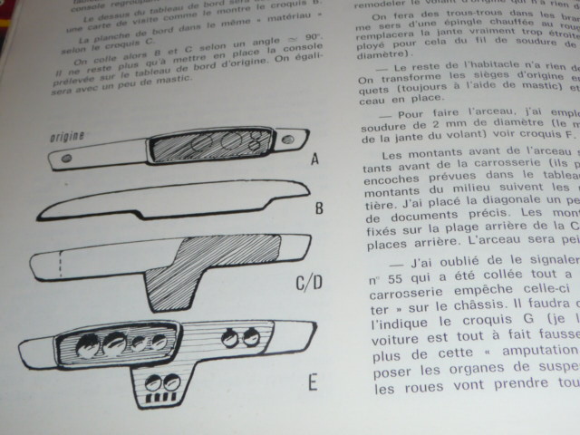 Sempre nutrita la sezione delle foto delle elaborazioni, realizzate da modellisti o da personaggi che ben presto si sarebbero ritagliati una notorietà nell\’ambiente. Giusto per fare un esempio, in basso, sono riprodotte alcune creazioni di Jean-Yves Puillet, fondatore di Mini Racing.