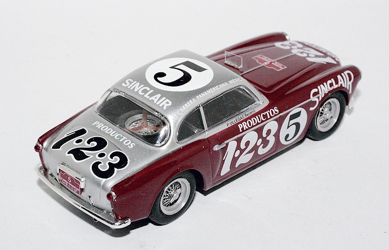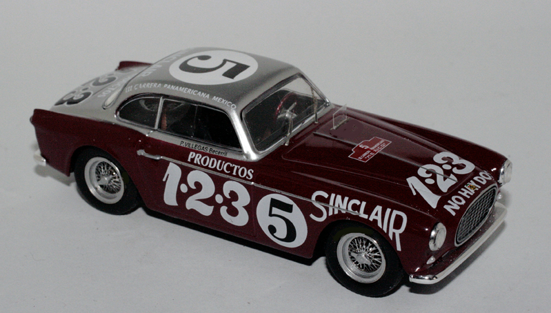All\’edizione 1952 della terza Carrera Panamericana parteciparono nove Ferrari, distribuite tra 250S, 212 Inter, 212 Export, 340 Mexico e 340 America. La vettura che si classificò meglio fu la 340 Mexico di Chinetti e Lucas, appoggiata da un\’industria locale di oli e detersivi, la 1-2-3, proprietà di Santiago Ontanon. Ognuna di queste vetture è stata riprodotta in scala 1/43 con esiti altalenanti. In particolare, il modello che ci riguarda più da vicino, la 212 Inter di Echeverria e Becerril, entrò nei cataloghi Styling Models ma è da dimenticare perché infarcita di troppi errori. L\’uscita della Ferrari Collection è quindi salutata con grande interesse, trattandosi di una riproduzione inedita come diecast e piuttosto corretta nella decorazione e nell\’interpretazione delle linee generali, a parte qualche dettaglio evidenziato nelle didascalie che corredano le immagini.
