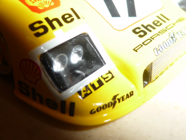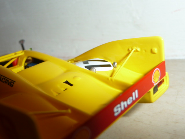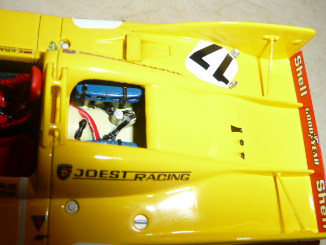 | Correttamente realizzati i sedili, in colore rosso, caratteristica piuttosto comune delle vetture del team Joest. Nella sua semplicità, la livrea Shell è molto attraente, vivacizzata da alcuni elementi \”di contrasto\” quali i sedili rossi e i coperchi delle trombette di aspirazione di colore azzurro. Le uscite d\’aria sui passaruota anteriori sono riempite di un colore nero e rendono bene l\’idea, pur senza essere passanti (per quelle ci vogliono altri budget!) |