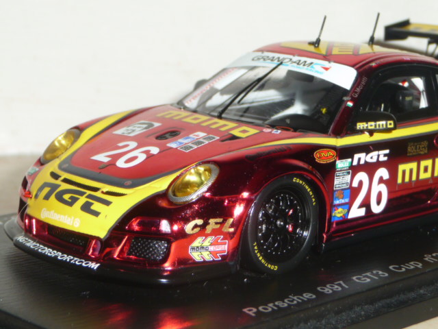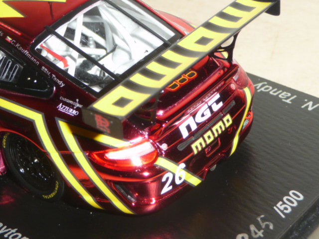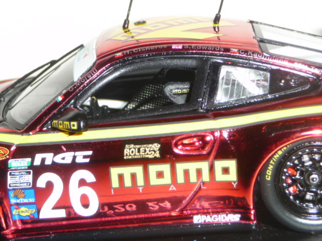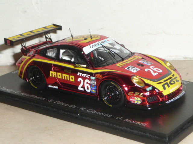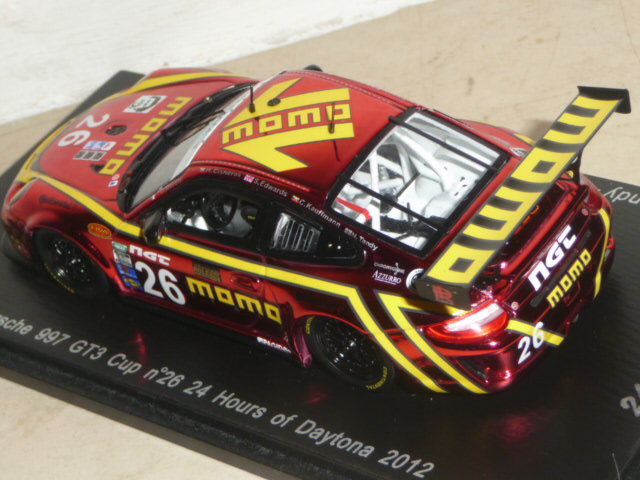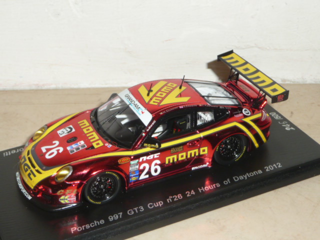 Cosa c\’è di più americano di una Porsche sponsorizzata Momo che ha preso parte alla 24 Ore di Daytona? Una vettura NASCAR, risponderà qualcuno. D\’accordo. Allora diciamo che la sopraccitata Porsche si prende la palma di \”next best thing\”. E dopo la marea di novità introdotte dagli importatori francese e tedesco (sigle SF ed SG), è la volta degli \”US\”. Col numero di catalogo US01 e tanto di scatola a stelle e strisce, il soggetto prescelto è affascinante: si tratta della Porsche 911 GT3 Cup che ha preso parte alla 24 Ore di Daytona nel 2012. Circa un mese dopo la vettura era a Sebring con una decorazione leggermente diversa. Omaggio a Moretti, questa Porsche rivisita la caratteristica livrea Momo in chiave moderna, con un tono di rosso \”metallescente\” di un fascino e di un potere evocativo senza eguali. La produzione, numerata, è limitata a 500 esemplari. La base prescelta la conosciamo già bene, anche se è stata aggiornata e modificata visto che le vetture Cup della Gran-Am presentano alcune differenze rispetto ai corrispettivi monomarca. A parte qualche particolare migliorabile (non al livello i fermacofani in decal), si tratta di un modello davvero d\’impatto, destinato ad andare esaurito molto presto. Aspettiamo a questo punto altre versioni (Sebring in primis). L\’ultima foto della gallery suggerisce un possibile abbinamento con un altro modello uscito in questi giorni, la 935 Joest simil-Moby Dick utilizzata da Gianpiero Moretti nella gara DRM del Norisring 1981 (edizione Raceland, catalogo RS1201, in 400 pezzi numerati).