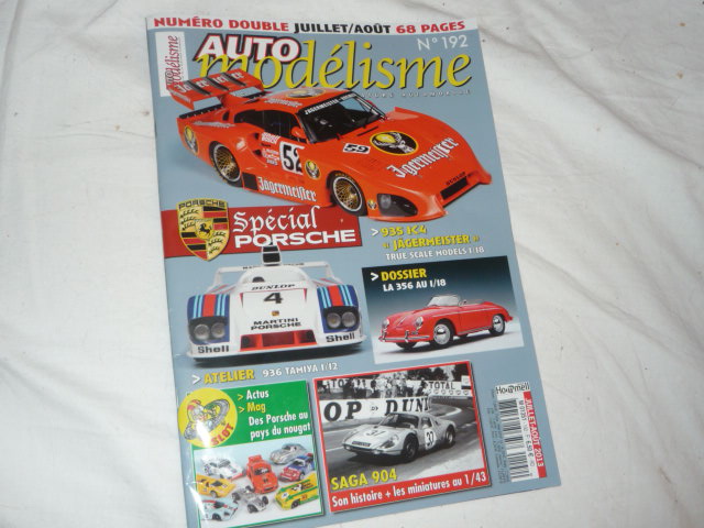 Luglio-agosto, numero doppio di Auto Modélisme (68 pagine) e com\’è ormai tradizione, la rivista edita da Michel Hommell esce con uno speciale tematico, stavolta dedicato alla Porsche. Ritroviamo quindi tutti i contenuti abituali della rivista, ma il tema dominante è il costruttore di Stoccarda, che monopolizza già la copertina, tra l\’altro con la 935 K4 in 1:18 di TrueScale o con l\’occhiello riservato a uno degli articoli sulle scale grandi, una rassegna delle 356 nella scala 1:18. E\’ un bel numero, questo Auto Modélisme estivo: interessante (anche se non lunghissima, com\’è ormai, ahinoi, abitudine) la presentazione di un nuovo marchio di modelli in resina in 1:18, molto vicini per concezione e anche per origine agli ormai noti OttOmobile; si tratta della gamma GT-Spirit, che debutta con due Porsche, una 911 Targa 2.0 del 1967 e una 944 S2 Cabriolet del 1989. Altre novità in arrivo anche nella scala 1:12, fra cui una 911 Carrera RS 2.7 del 1973. Si prosegue con la già citata retrospettiva sulle 356 in 1:18 (abbastanza utile e comunque completa), per affrontare poi diversi altri temi storico-modellistici legati alla Porsche: una breve recensione del kit Tamiya in 1.24 della 934 Jagermeister, la trasformazione in versione Le Mans 1981 della 936/78 ancora di Tamiya (1:24), l\’immancabile angolino del diorama con un\’ambientazione Le Mans 1971 e un originale pezzo su come trasformare in \”statico\” un modellone 1:12 Tamiya nato come RC (Porsche 936/77 Le Mans \’77).