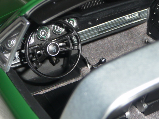 | …e anche nella parte inferiore della scocca. La plancia e il cruscotto sono dei piccoli capolavori. Notare, fra l\’altro, l\’indicazione delle marce tampografata sul pomello del cambio, la precisione della grafica dei vari quadranti e la decorazione delle parti in plastica. Difficile davvero pretendere qualcosa di più. |