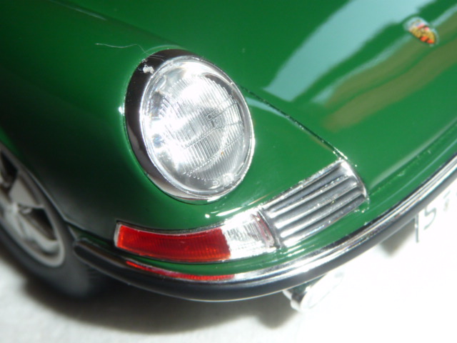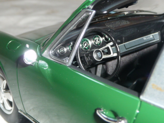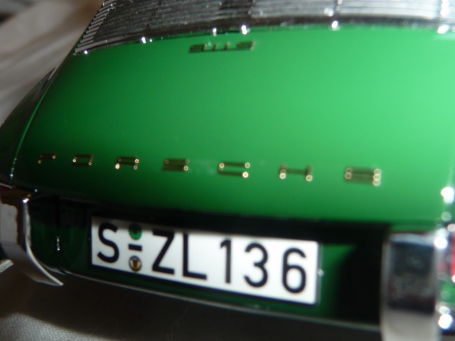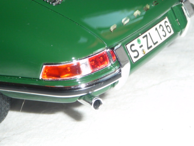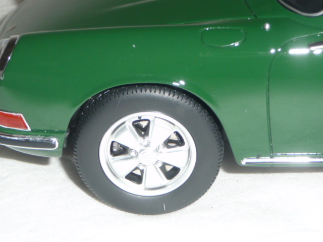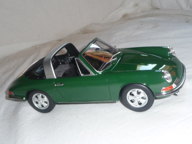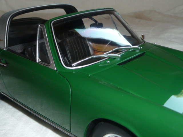 | La 911 S di GT-Spirit in un bel colore verde scuro. La verniciatura è assolutamente perfetta e realistica: fine, brillante, praticamente senza la minima sbavatura. |