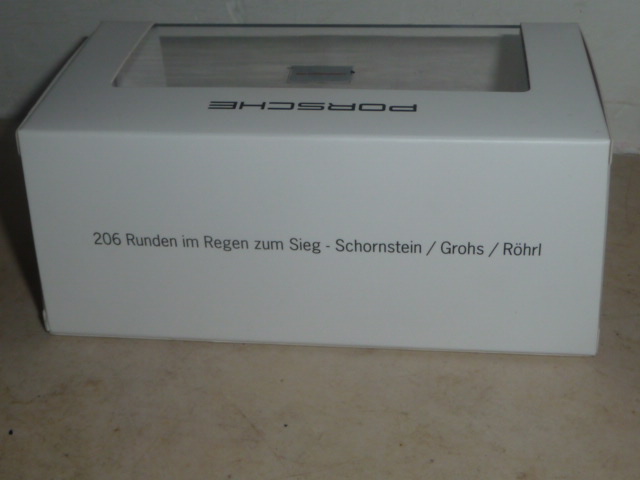 | Stavolta questo nuovo modello arriva con scatola ufficiale Porsche e tanto di foto di Walter Roehrl. |