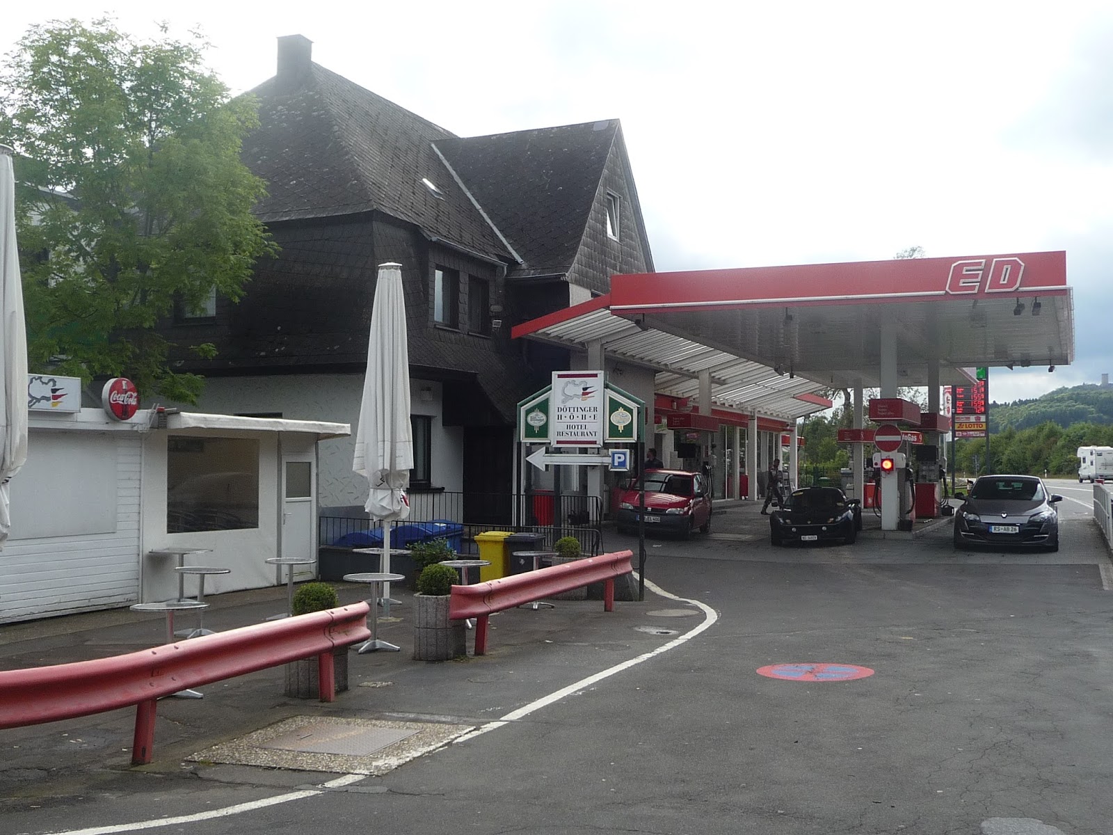 Rilancio allora con un ricordo del 1996, quando visitai anch'io quello strano negozio/stazione di servizio e rischiai di brasare la carta di credito davanti a una muraglia (allora) di Minichamps. Non ricordo il palo con i cartelli dei circuiti ad Adenau: ricordo però che avrei voluto cercare il castello di Konigsfeld, quello dei fumetti di Michel Vaillant, e trovai invece un dentista che curò uno spaventoso ascesso all'autista del nostro transporter, dopo una notte di viaggio e una in bianco per il mal di denti. Il tutto grazie a una famiglia di pizzaioli pugliesi! And this, too, is motor racing…
