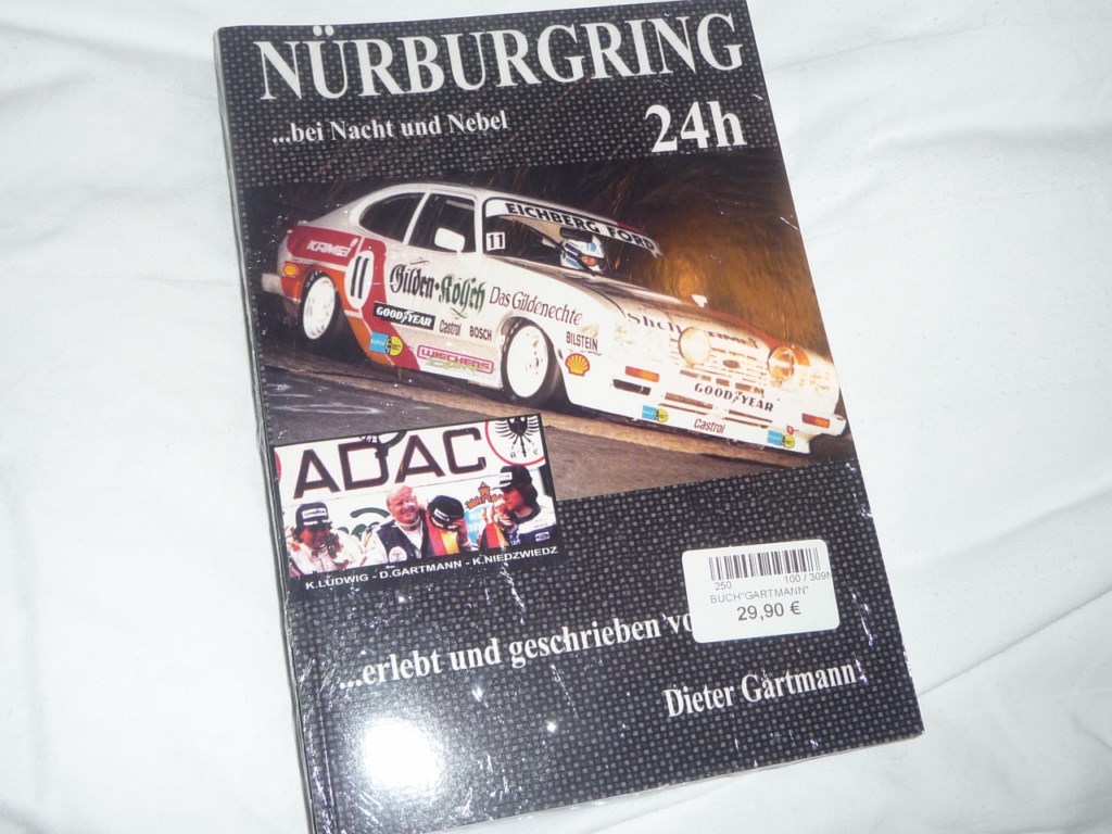 Perché qui è pieno di tracce che negli anni passati ho avuto la fortuna di raccogliere grazie a un paio di colleghi tedeschi, uno dei quali cresciuto a Kelberg, a due passi dalla pista (un giorno vi racconterò di quando siamo andati nel bosco a cercare i resti dell\’anello Sud). Molti, in ogni caso, conosceranno il negozietto del Doettinger Hoehe, lungo la strada che costeggia il rettifilo dell\’anello nord. Là dentro, oltre una vasta scelta di modelli (soprattutto Minichamps, Spark e derivati) è sempre necessaria un\’occhiata più approfondita all\’offerta di libri perché vi si trovano titoli legati alla pista e alla sua storia che non è facile reperire altrove. E\’ il caso di qualche volume quasi prodotto in proprio o da piccole case editrici, come i due \”Hallo Fahrerlager\” di Rainer Braun, la voce storica del Nurburgring, che ha racconto molti succosi aneddoti, riservati però solo a chi conosce il tedesco. Così come è affascinante \”Nuerburgring… bei Nacht un Nebel\” di Dieter Gartmann, vincitore assoluto di una vecchia edizione della 24 Ore insieme a Klaus Ludwig e Klaus Niedzwiedz.