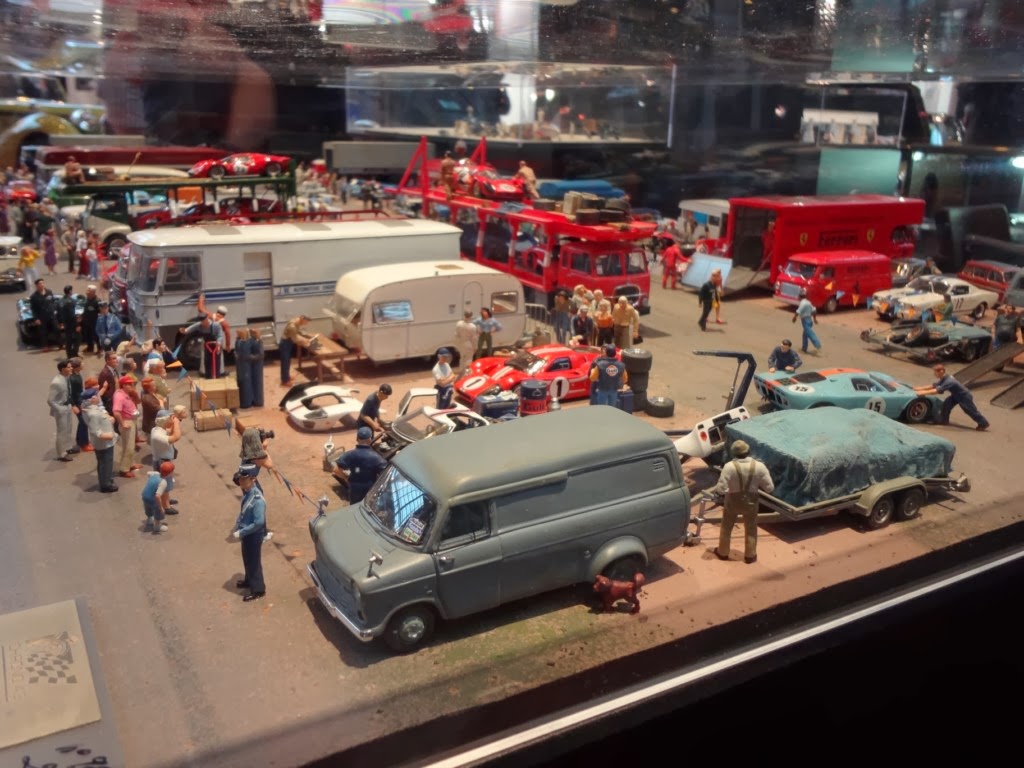 Qualche lettore del blog ha chiesto delle foto del nuovo diorama di Jean-Claude Baudier, di cui Auto Modélisme aveva fornito un\’anteprima nei numeri scorsi. Stavolta il tema prescelto era il paddock della 24 Ore di Le Mans del 1967. Devo dire che a parte la mole notevole (si tratta di 1:43, ma la superficie è notevole!), il diorama non mi ha particolarmente impressionato. I perché sono forse legati alla non perfetta integrazione fra i vari elementi. Modelli speciali montati (più o meno bene, spesso malino) convivono con modelli diecast di produttori come Norev, che contrastano abbastanza con le altre miniature, specialmente perché non sono stati oggetto di invecchiamento o di sporcatura. Anche i modelli industriali elaborati non sono di grande livello.