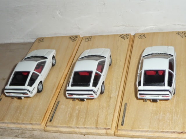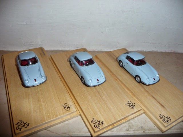 | Trio di Fiat-Abarth 500 Zagato, ancora Yow Modellini. Anche in questo caso sono state necessarie diverse modifiche per migliorare il risultato finale. Alcune volte, su questi kit, vengono apportate modifiche anche strutturali, dal momento che l\’esatta corrispondenza dei vari pezzi principali è spesso alquanto problematica. |