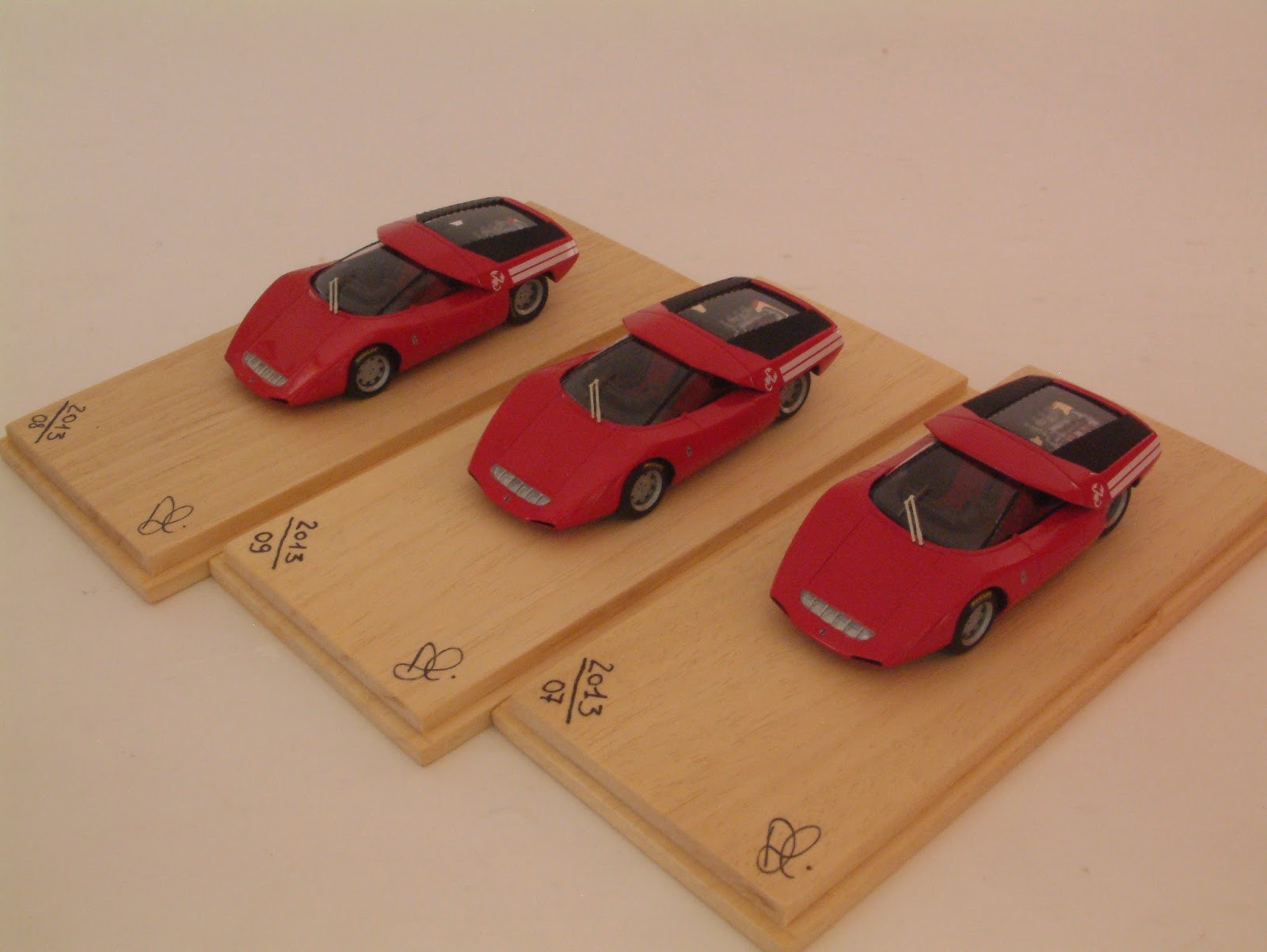 | Tre montaggi del 2013: Ferrari 612 P4/5 Pininfarina su base Yow Modellini. Diverse le modifiche apportate al kit d\’origine, bello ma alquanto \”semplice\”. Abitacolo dettagliato, assetto rivisto e corretto, altri particolari aggiunti. |