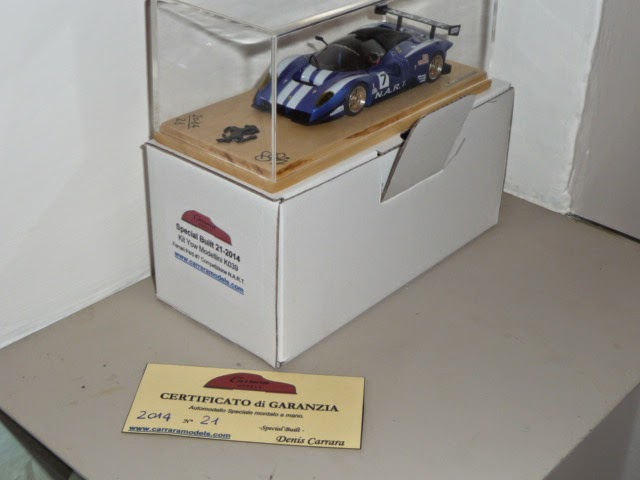 | I montaggi speciali di Carrara Models, basati su kit prodotti da altre marche, sono contraddistinti da una numerazione specifica. Il modello è montato su una base in legno con teca in plexiglas. |