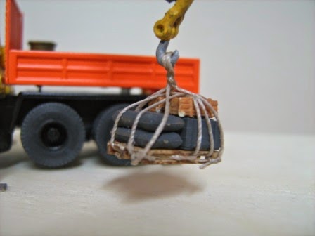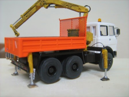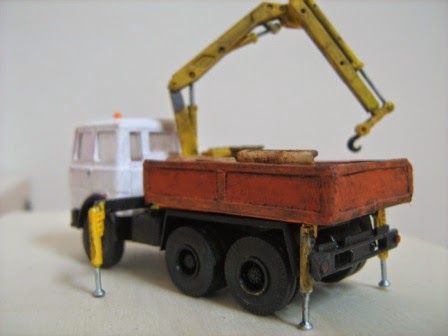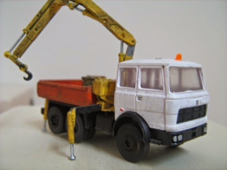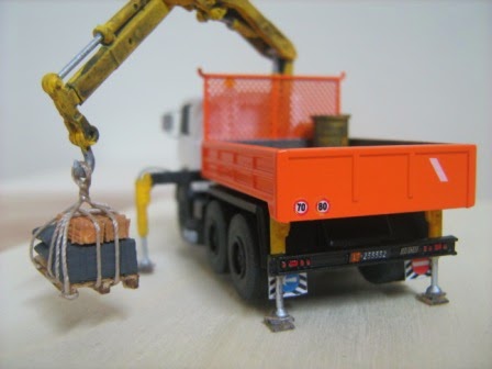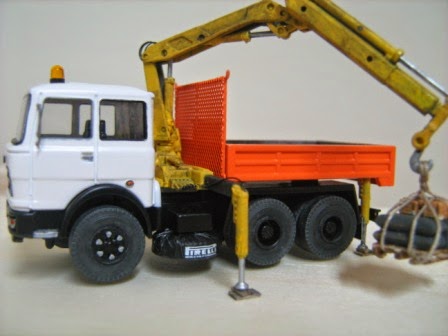 Gru Herpa con sotto i piedini di stazionamento dei legni, come al vero.