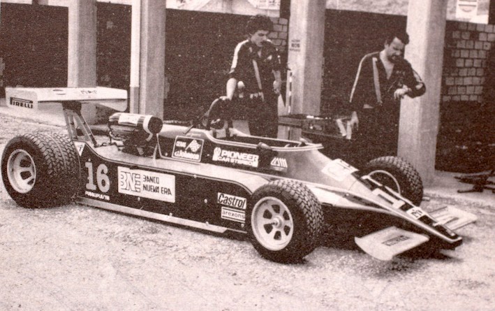 | La Minardi GM75 Formula 2 del 1980 fotografata ai box (in quel tempo davvero spartani…) dell\’Autodromo del Mugello. |