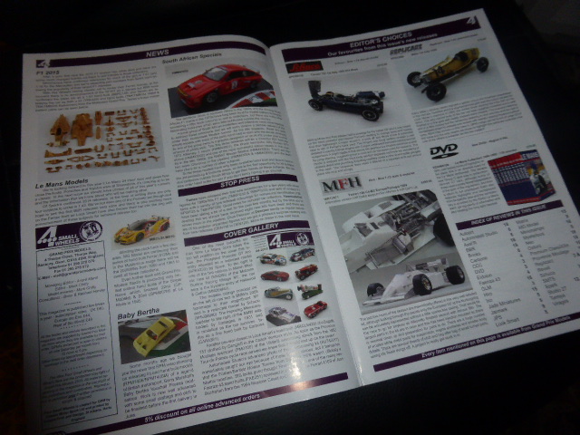 Poco attraente e con sole 20 pagine rispetto alle abituali 24, questo numero di Four Small Wheels non ha gran ché da proporre, se non qualche notizia da approfondire in futuro. Fra queste vi è la piccola produzione sudafricana di kit (e montati) molto di nicchia in resina, scala 1:43, fra cui un\’interessante e inedita Alfetta GTV Biturbo e altre cose di questo genere. Per il resto non ci sono grandi motivi di interesse, a parte la solita teoria di resincast e alcuni vecchi modelli speciali riproposti sotto \”nuovi\” marchi a prezzi assolutamente fuori mercato (di queste serie farà presto giustizia la futura produzione Looksmart, se non ci penseranno prima i collezionisti). L\’articolo storico, di David Blumlein, trae ispirazione dal kit GCAM della Schneider Le Mans 1926 per raccontare la storia di questa poco nota vettura.