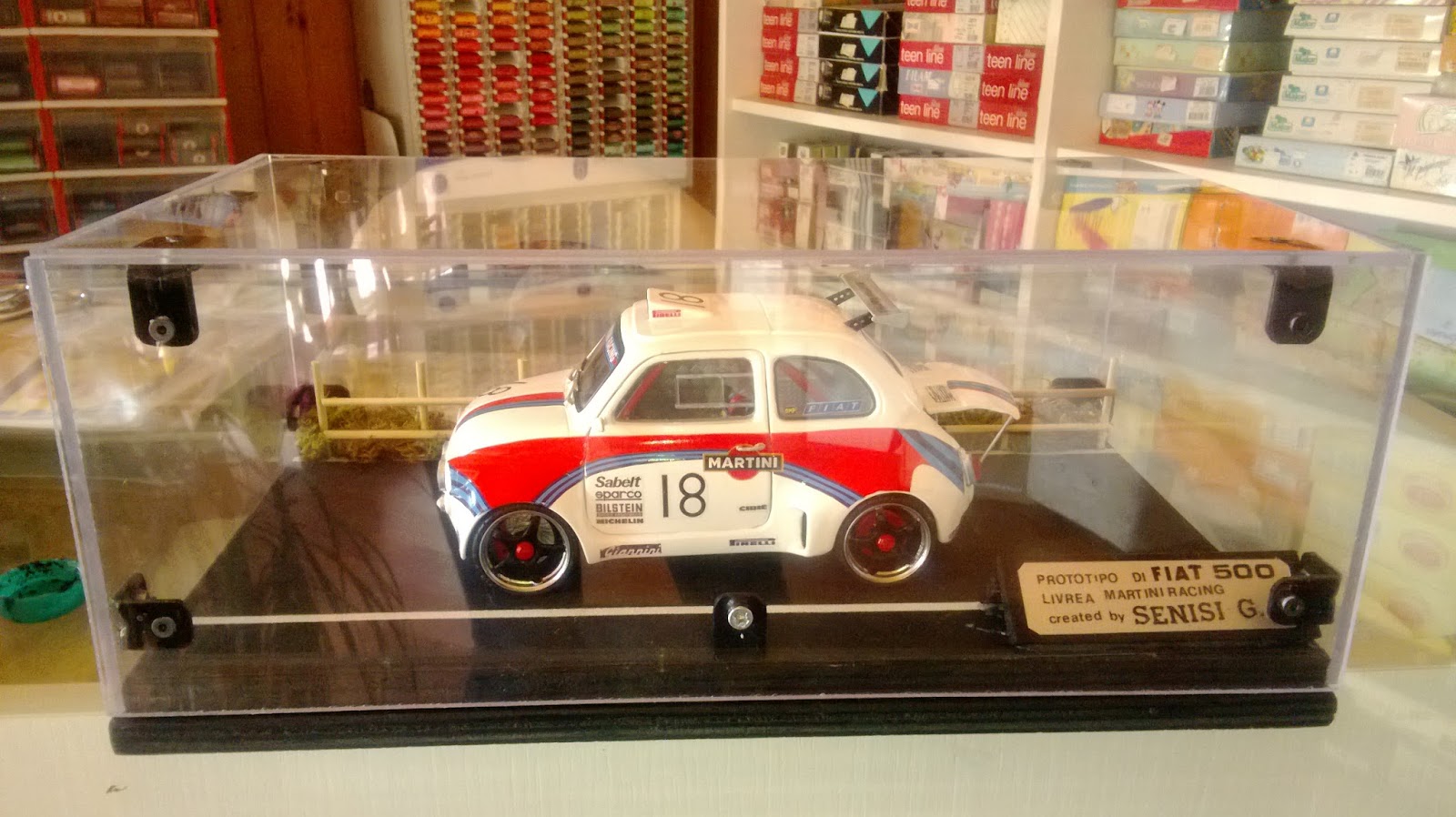 Giuseppe Senisi è un bravo modellista di Potenza, che ama soprattutto le trasformazioni di mezzi pesanti moderni, ispirandosi a veicoli esistenti. Le basi utilizzate sono kit in plastica. Presentiamo qui una carrellata delle sue creazioni, che comprende anche una Fiat 500 molto particolare, con livrea Martini Racing, che ricorda le Lancia Delta rally degli anni 80/90 (trasformazione da un diecast).